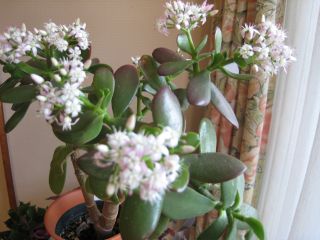 ・ 原産地:南アフリカ。日本には昭和初期に渡来した。 ・ 常緑低木。 ・ 葉は多肉質、長円形で長さ3cmくらい。 ・ 樹高:30cm〜3m。 ・ 1月頃に小さい可憐な白やピンクの花をつけます。 ・ 寒さを避けるため、冬に室内に入れておいたら花が咲きました。 ・ 葉が肉厚で形が小判型なので「金のなる木」と呼ぶようになったのでしょう。 ・ 花言葉:「一攫千金」 ・ 2月27日の誕生花。 *栽培上の留意点 ・ 寒さには弱いので、冬は室内で育てましょう。 ・ 日光は良く当てるようにし、水やりは控えめにします。 ・ 挿し芽をするときは、日陰で切り口を乾かしてから挿すようにしましょう。 |