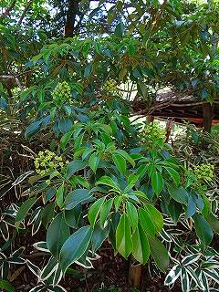 ヤマグルマ (山車) 別名:トリモチノキ (鳥黐木) 英名: 学名:Trochodendron aralioides ヤマグルマ科 ヤマグルマ属 |
